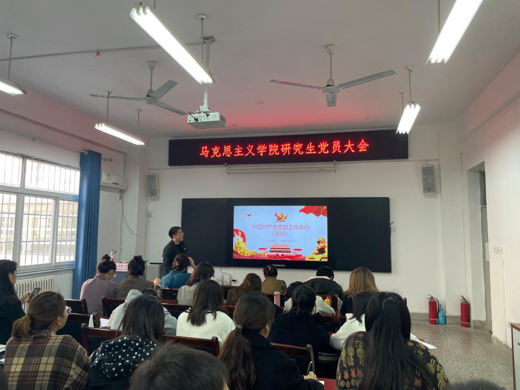 10月21日,馬克思主義學(xué)院召開研究生黨員專題學(xué)習(xí)會(huì),學(xué)習(xí)了《中國共產(chǎn)黨支部工作條例(試行)》《中國共產(chǎn)黨黨員權(quán)利保障條例》《中國共產(chǎn)黨普通高等學(xué)校基層組織工作條例》和《中國共產(chǎn)黨黨員教育管理工作條例》等文件。學(xué)院思想政治教育研究生黨支部和馬克思主義理論研究生黨支部共計(jì)40余名黨員參加了學(xué)習(xí)會(huì),會(huì)議由馬克思主義理論研究生黨支部書記孫建榮主持。