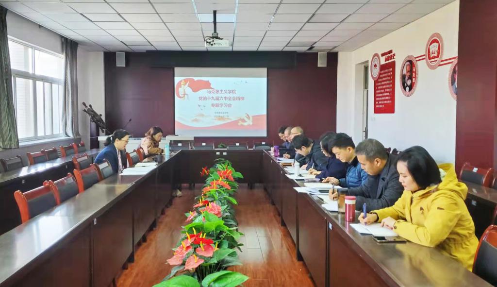 11月17日,馬克思主義學院黨總支召開理論學習中心組學習(擴大)會,深入學習貫徹黨的十九屆六中全會精神。會議由學院黨總支書記楊永革主持,理論學習中心組成員及各支部書記參加了學習。