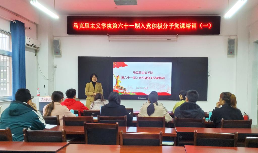 為進(jìn)一步提高學(xué)院入黨積極分子的思想政治覺悟,端正入黨動(dòng)機(jī),系統(tǒng)地學(xué)習(xí)黨的基本理論、基本知識(shí),領(lǐng)悟習(xí)近平新時(shí)代中國(guó)特色社會(huì)主義思想。11月5—9日,馬克思主義學(xué)院舉辦入黨積極分子院級(jí)黨課系列培訓(xùn)。學(xué)院黨總支書記楊永革、思想政治教育研究生黨支部書記劉婷婷、馬克思主義理論研究生黨支部書記孫建榮分別授課,全體入黨積極分子參加了培訓(xùn)。