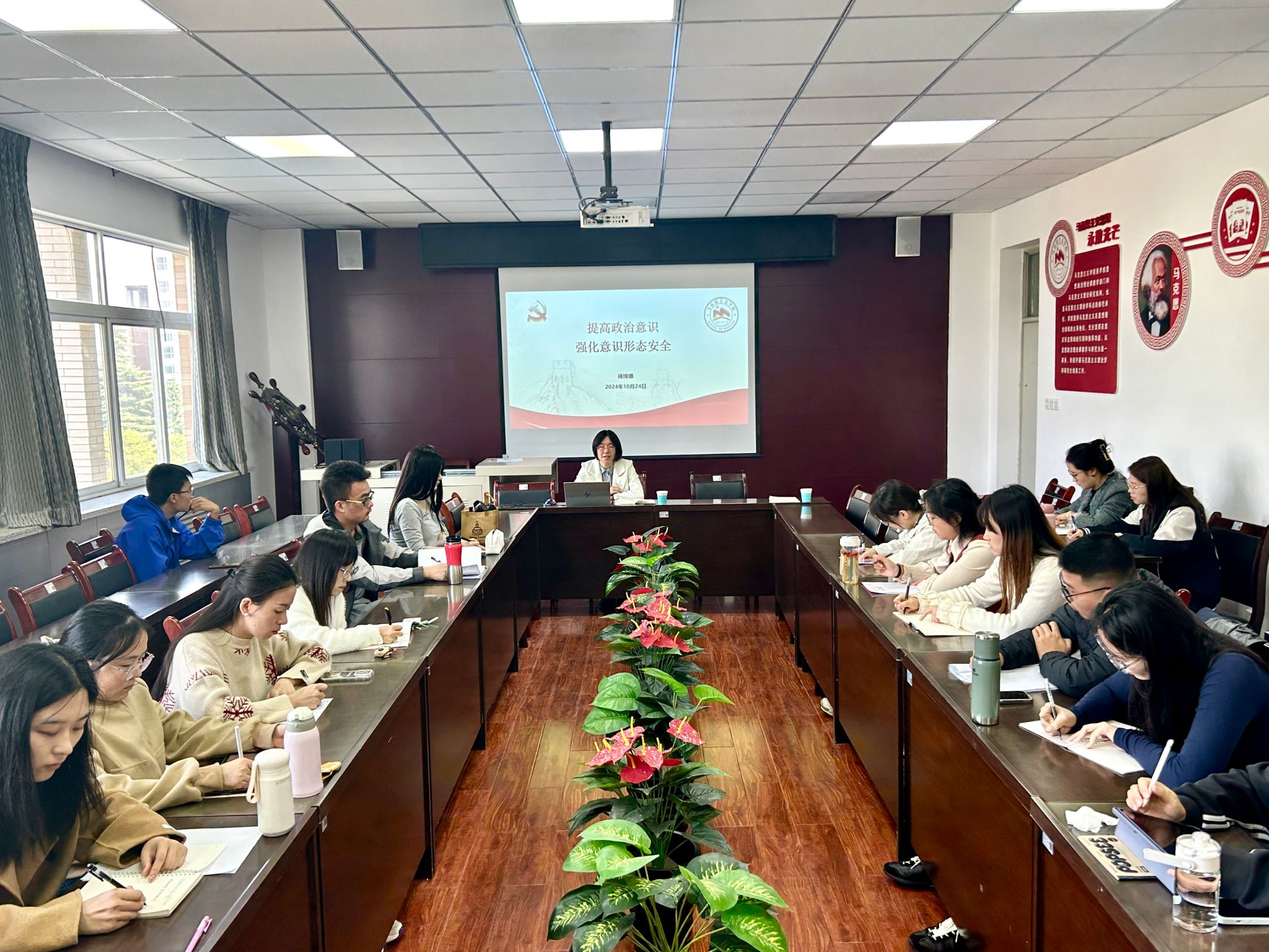 隨后,傅博娜以《提高政治意識,強化意識形態(tài)安全》為主題講授了黨課。她分別從習(xí)近平總書記關(guān)于意識形態(tài)的重要論述、高校意識形態(tài)工作面臨的形勢挑戰(zhàn)以及如何提高網(wǎng)絡(luò)安全意識、加強校園文化建設(shè)這四個方面進行了詳盡闡述。她強調(diào),作為馬克思主義理論專業(yè)的研究生,首先要從思想上入黨,端正入黨動機,認(rèn)真學(xué)習(xí)黨的二十屆三中全會精神,其次要守好意識形態(tài)陣地安全,意識形態(tài)工作在黨的工作中占據(jù)至關(guān)重要的地位,關(guān)乎旗幟、道路和國家政治安全。在當(dāng)前復(fù)雜的社會環(huán)境下,高校作為思想文化的關(guān)鍵陣地,務(wù)必高度重視意識形態(tài)工作,持續(xù)提升自己的政治意識與思想認(rèn)知。傅書記的講解深入淺出,引經(jīng)據(jù)典,讓大家對如何守好意識形態(tài)這道防線有了更為深刻的理解。大家對于意識形態(tài)陣地的重要性有了更加清晰的認(rèn)知,也更加堅定了以實際行動爭取早日加入黨組織的信念。