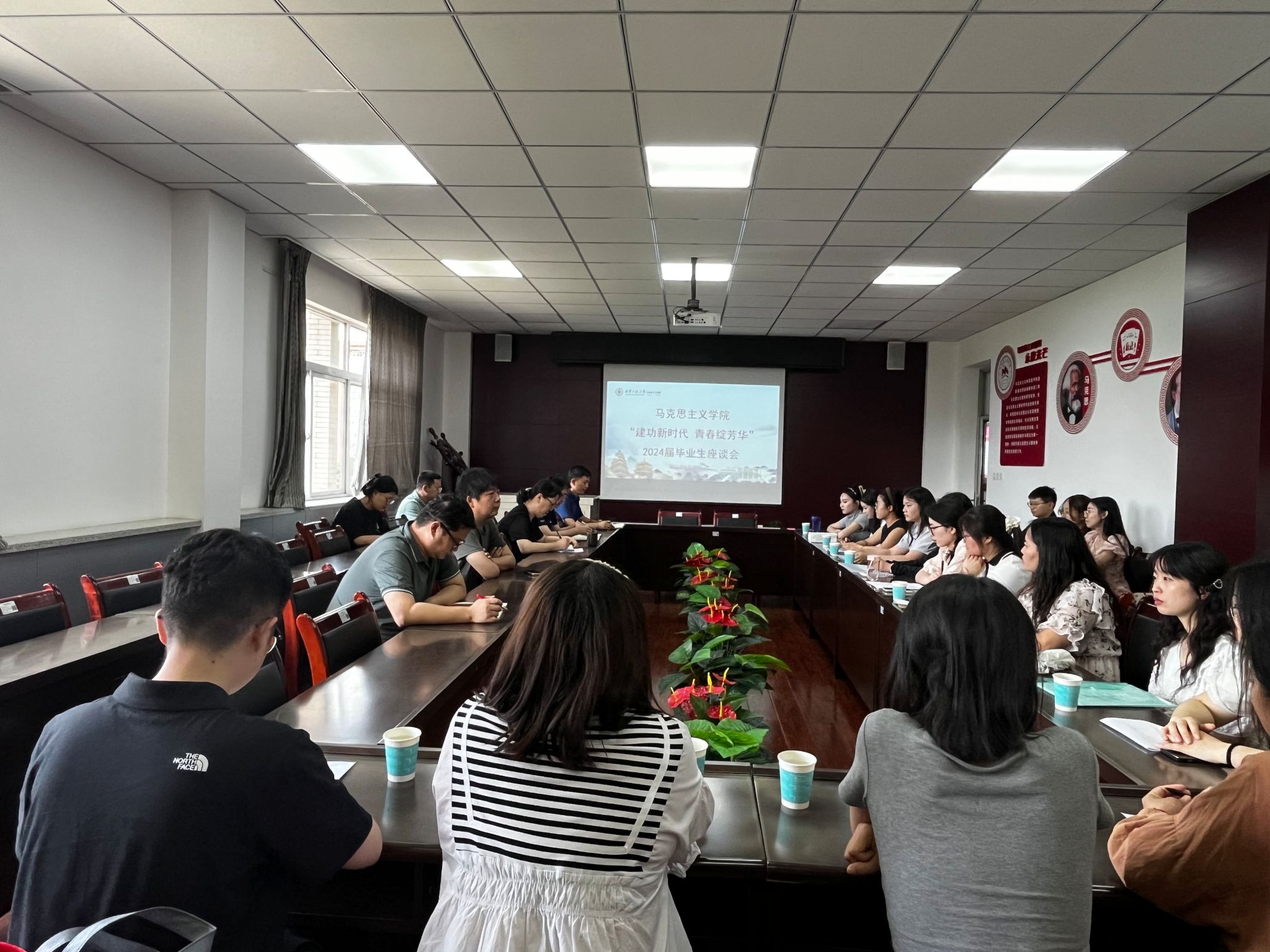 6月28日,為深入了解畢業(yè)生的學習、生活和就業(yè)狀況,傾聽畢業(yè)生的心聲,馬克思主義學院舉辦了以“建功新時代 青春綻芳華”為主題的2024屆畢業(yè)生座談會。馬克思主義學院黨委書記楊永革、副院長屈旻、研究生輔導員孫建榮、教師代表以及2024屆畢業(yè)生參加了會議。