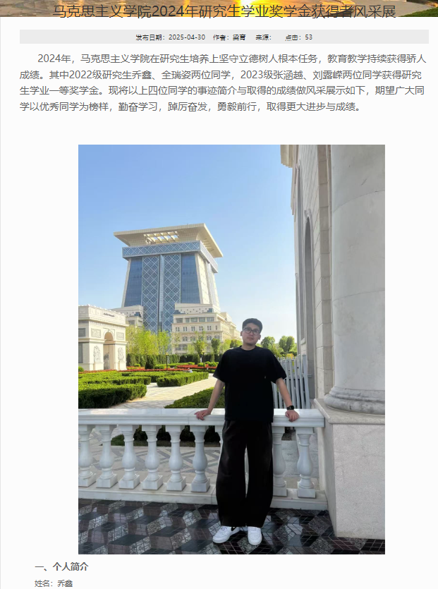 學院網(wǎng)站宣傳研究生學業(yè)獎學金一等獎獲得者先進事跡
