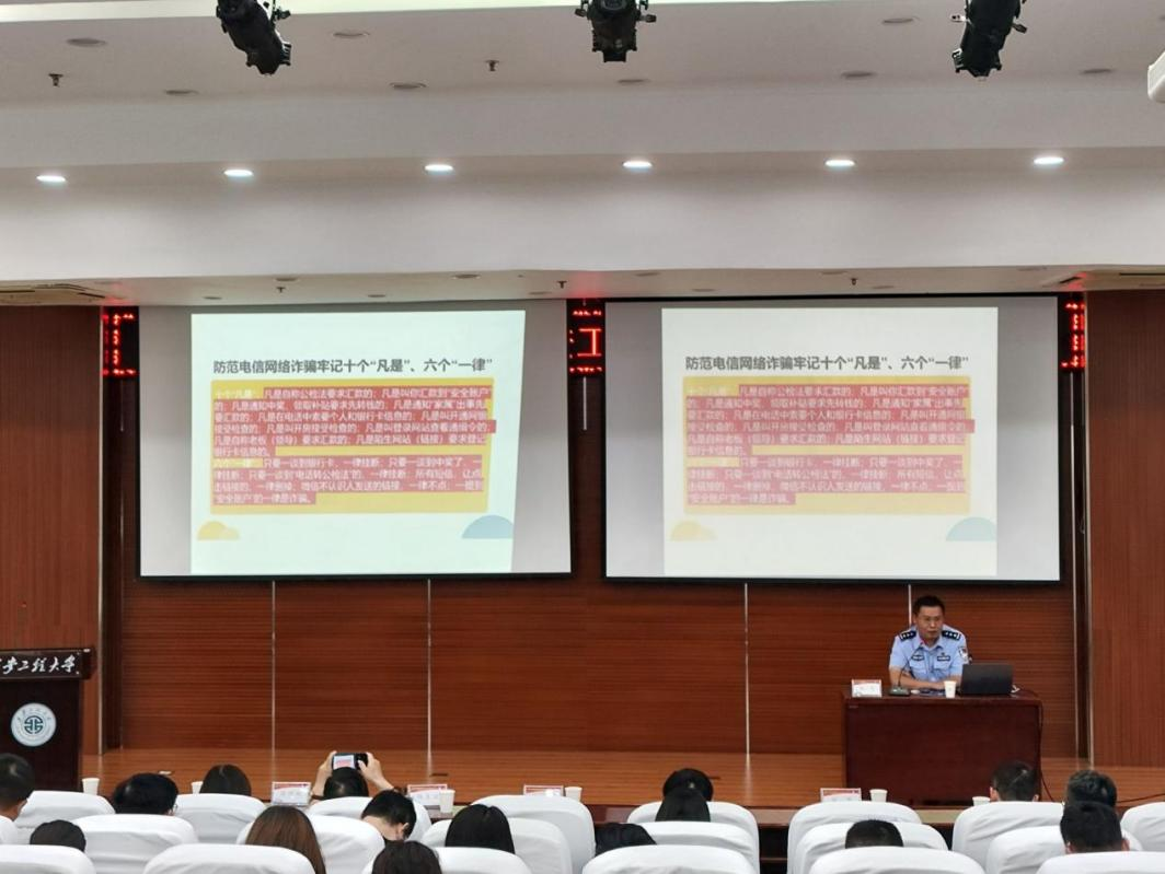 5月28日,受學校邀請,斜口派出所民警趙飛在圖書館報告廳為我院師生做防范電信網(wǎng)絡詐騙專題講座