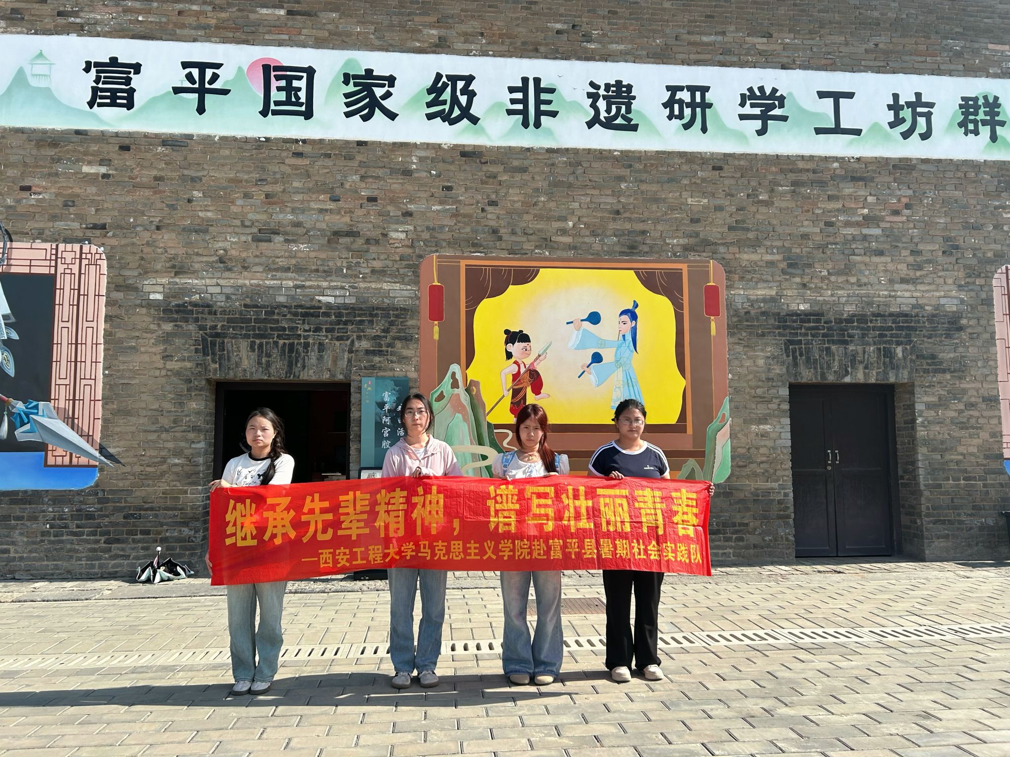 7月14日,實踐隊深入富平老城記憶館,在“文有楊爵,武有王翦”的歷史長卷中觸摸文化根脈。“孝子梁悅”“忠臣張紞”等故事,讓隊員感受“忠孝節(jié)義”的文化基因。漫步老城遺址,“深溝高壘”的防御格局、馬面垛口的軍事智慧等,彰顯古人“攻防一體、天人共生”的生存哲學(xué)。隊員觸摸磚石,感知先輩筑城守土的堅韌。在國家級非遺研學(xué)工坊群,隊員們感受著千年柿染的綠色智慧、阿宮腔的秦地風(fēng)骨、富平石刻的匠心堅守,讓文化自信在體驗中升華,展現(xiàn)富平人世代相傳的生活智慧與文化堅守。