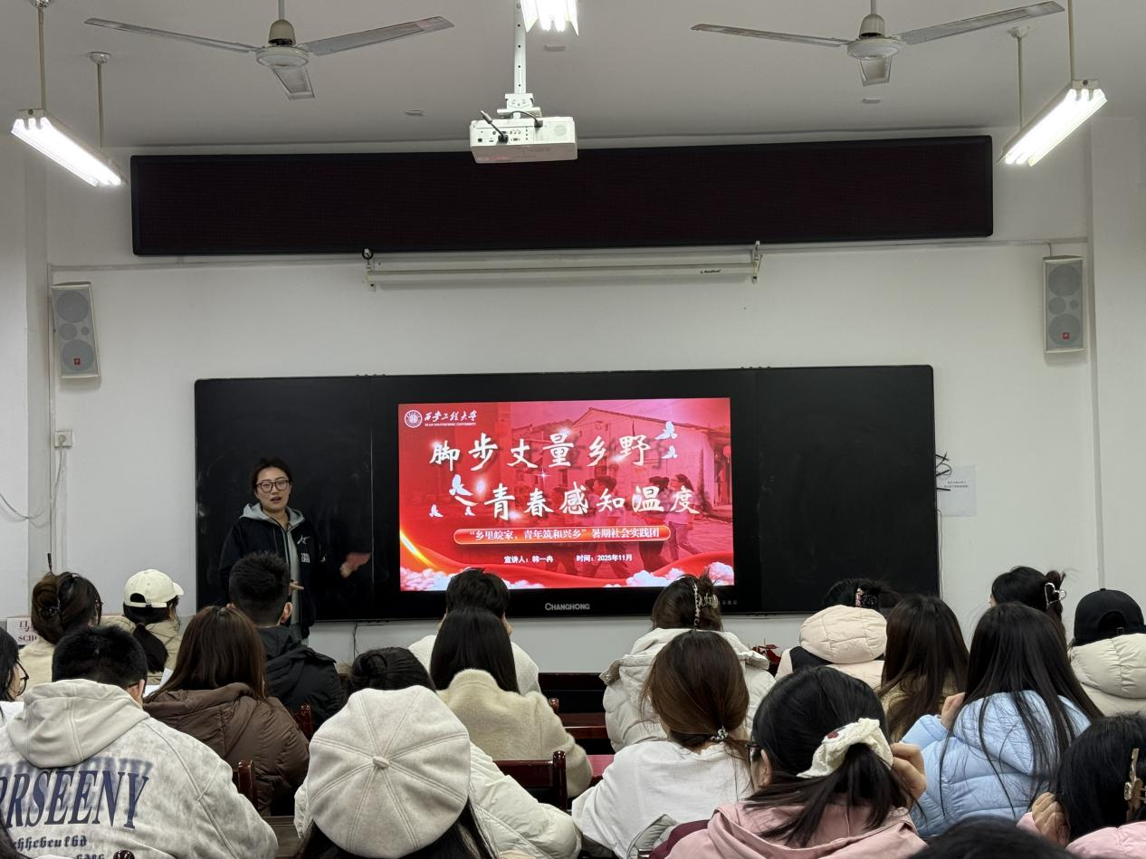 近日,學(xué)院赴安徽“鄉(xiāng)里皖家,青年筑和興鄉(xiāng)”陜西省“三下鄉(xiāng)”活動(dòng)省級(jí)標(biāo)兵團(tuán)隊(duì)成員向?qū)W院2025級(jí)全體研究生作“腳步丈量鄉(xiāng)野,青春感知溫度”主題實(shí)踐事跡宣講。