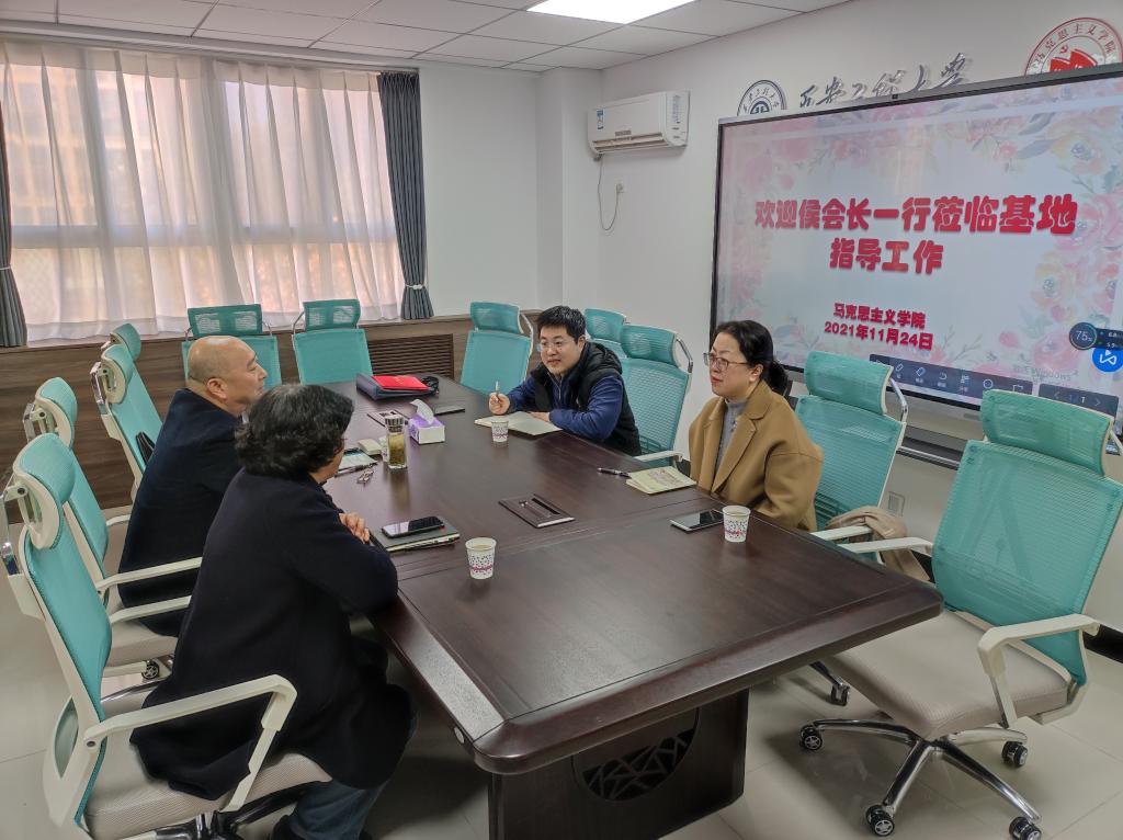楊永革首先對(duì)侯會(huì)長(zhǎng)一行來(lái)訪表示歡迎,隨后簡(jiǎn)要介紹了基地成立以來(lái)在理論研究、宣傳教育和學(xué)術(shù)交流等方面的工作開(kāi)展情況。侯代會(huì)對(duì)基地成立以來(lái)的開(kāi)展的工作表示肯定,并就基地下一步的工作規(guī)劃提出了具體的建議。