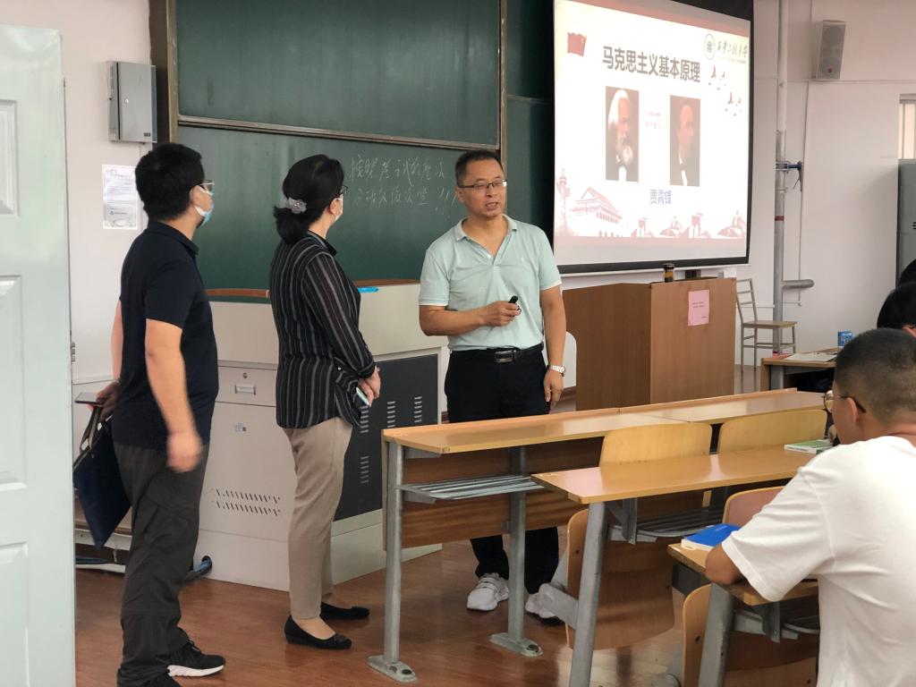 為確保新學(xué)期教學(xué)工作穩(wěn)步有序地開(kāi)展,進(jìn)一步加強(qiáng)思政課教學(xué)過(guò)程管理,8月29日、9月1日,馬克思主義學(xué)院分別對(duì)開(kāi)學(xué)初的教學(xué)工作進(jìn)行了全面檢查。馬克思主義學(xué)院黨總支書(shū)記、常務(wù)副院長(zhǎng)楊永革、副院長(zhǎng)張濤、郭松以及學(xué)院教學(xué)督導(dǎo)組成員分別在兩校區(qū)對(duì)教師到崗和教學(xué)情況進(jìn)行檢查。每一位教師都能夠按照學(xué)校的要求準(zhǔn)備完整的教學(xué)材料,教學(xué)效果良好;通過(guò)對(duì)兩校區(qū)2021級(jí)新生的課堂進(jìn)行檢查,絕大多數(shù)學(xué)生都能夠準(zhǔn)時(shí)到課,認(rèn)真聽(tīng)講,積極互動(dòng),教師也能夠以飽滿的精神狀態(tài)投入到2021級(jí)新生的教學(xué)工作中。